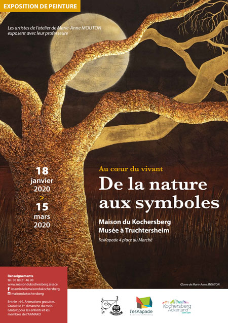 Les artistes de l'atelier de Marie-Anne MOUTON ont exposé avec leur professeure du 15 janvier au 15 mars 2020. Après l’exposition "Au cœur du vivant, un regard en conscience" de l’hiver 2017, l’atelier d’artistes a porté un regard sur la nature en décryptant ses symboles.