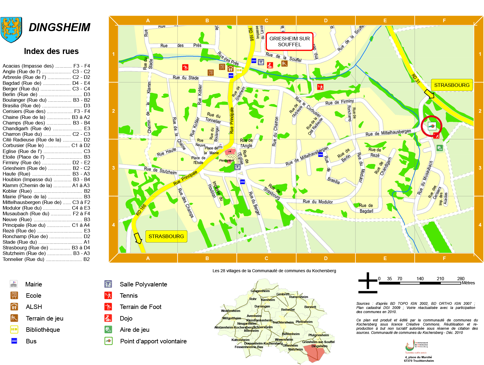 Derrière la Zone commerciale et à côté du terrain de pétanque, à droite en sortant du village en direction de Quatzenheim