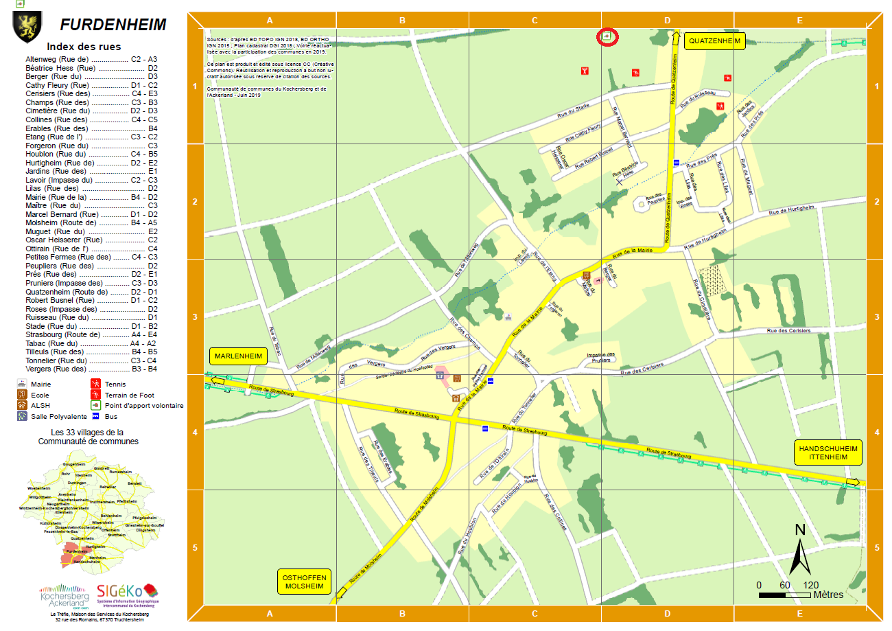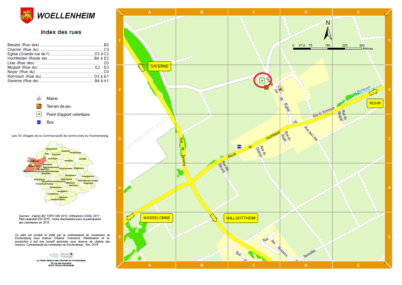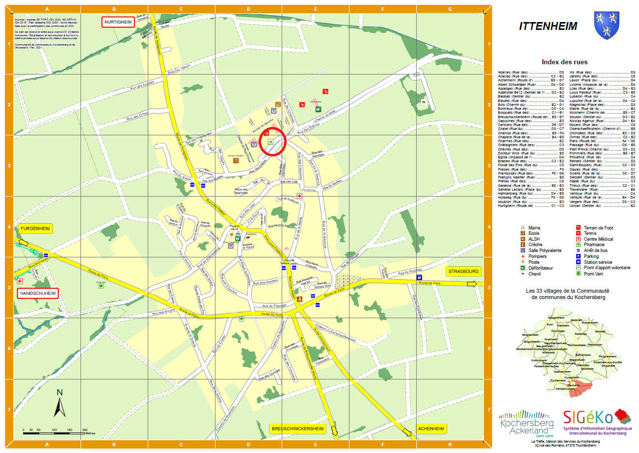 A l’entrée de l’aire de jeux, en sortant du village en direction de Truchtersheim, rue Saint Georges