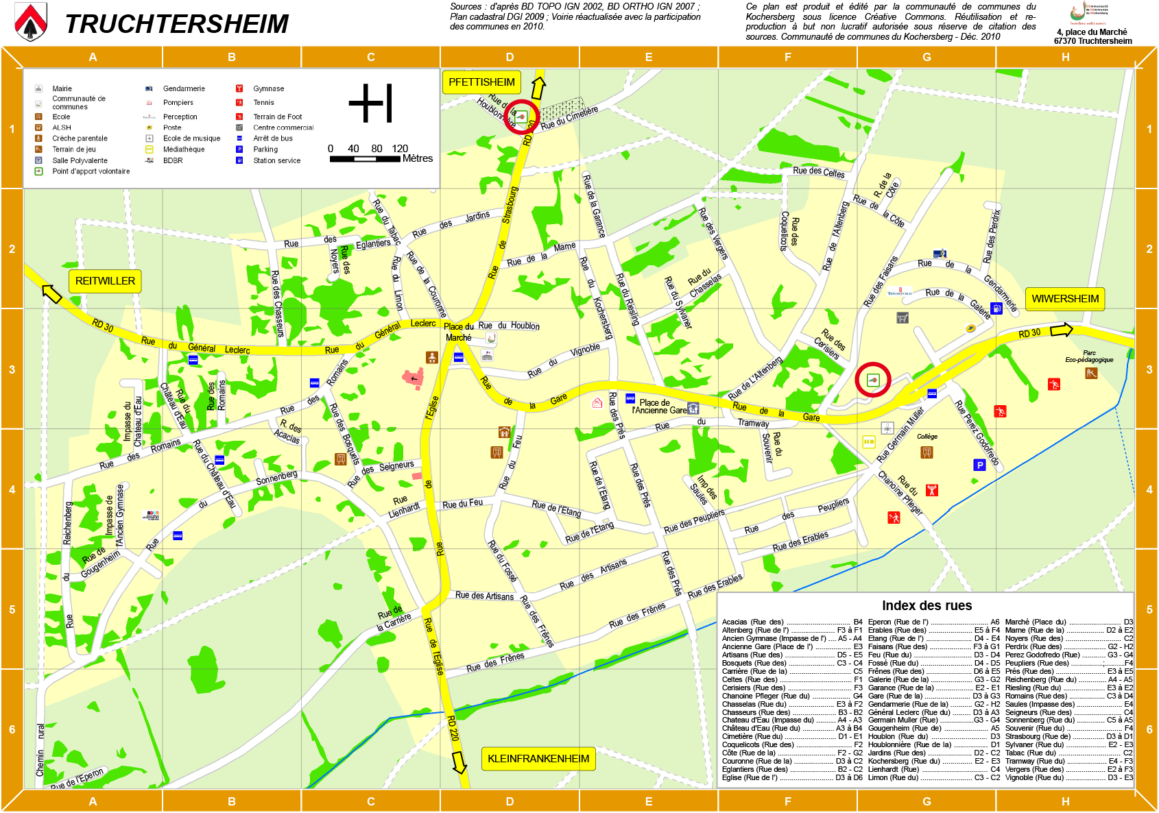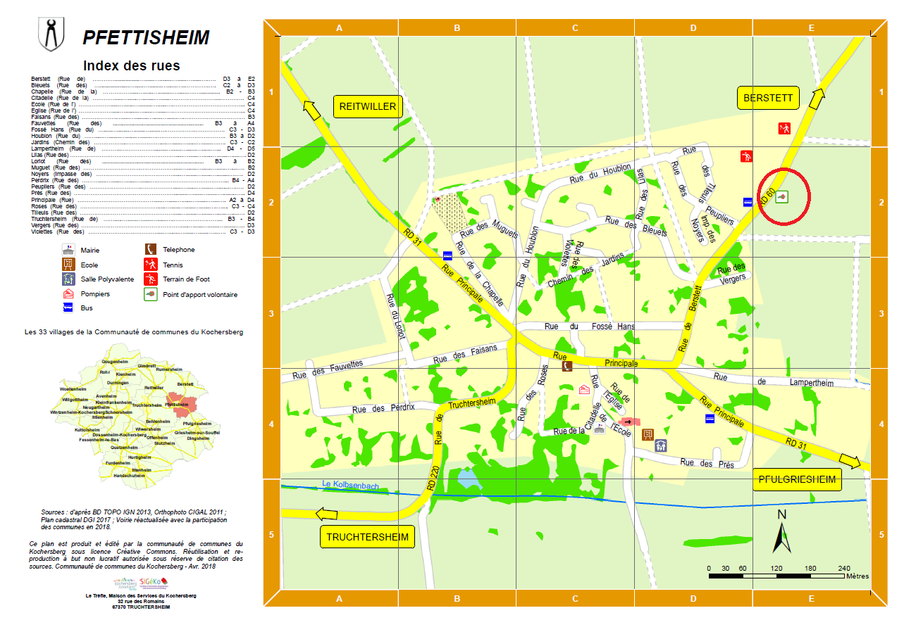 A gauche en sortant de Truchtersheim en direction de Pfettisheim, face au cimetière et derrière le mur de grès rose, rue de Strasbourg