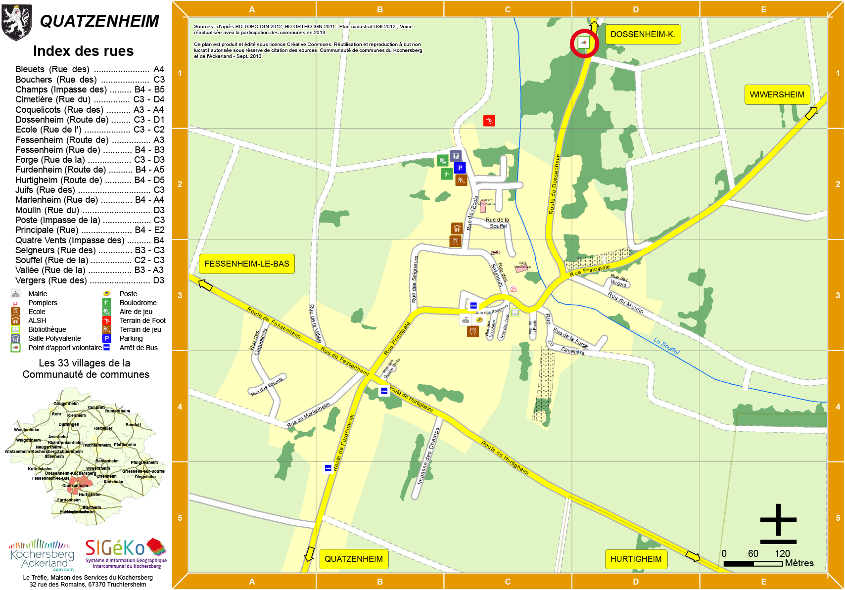 à la sortie du village en direction de Dossenheim-Kochersberg (sur la D79)